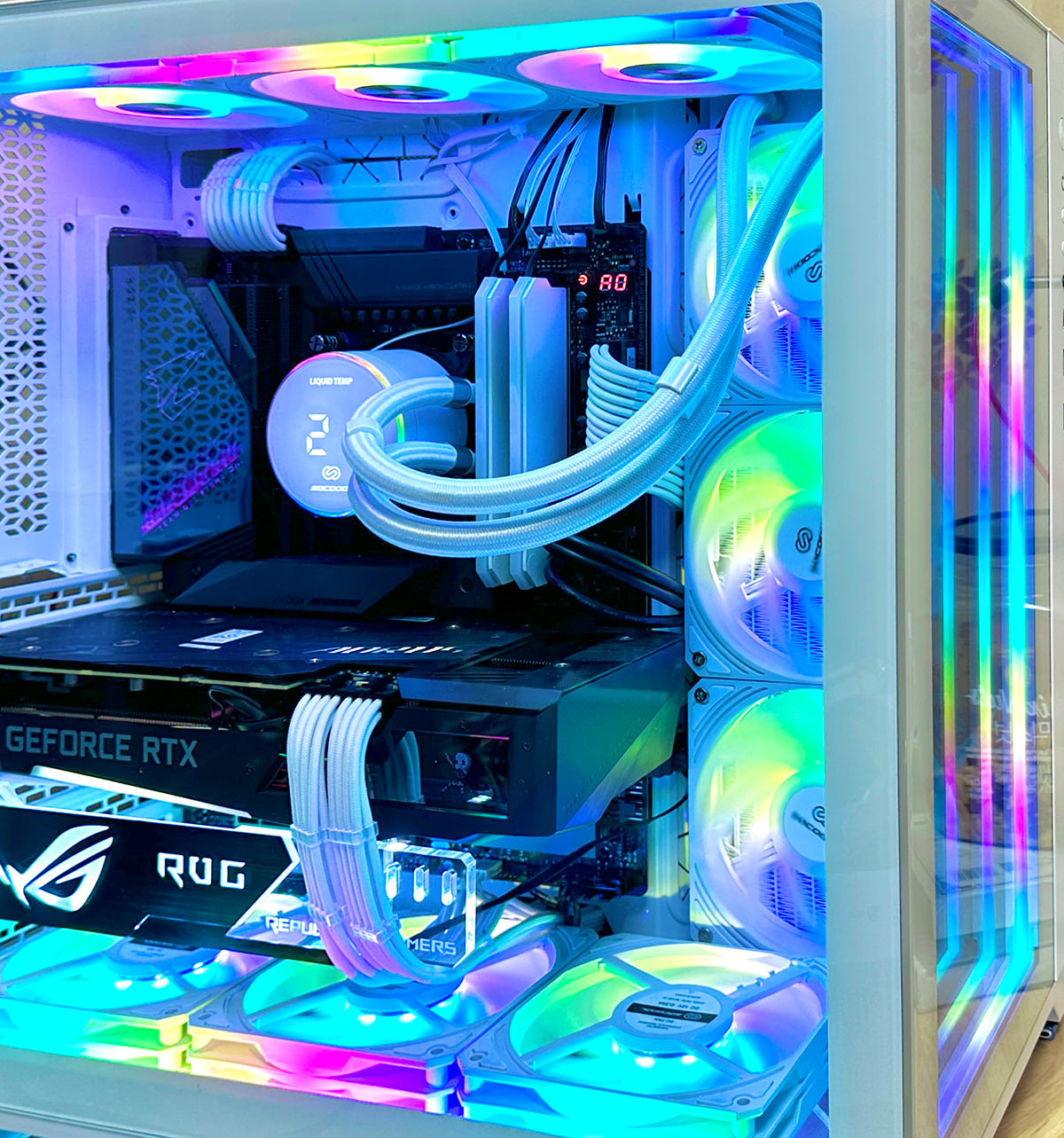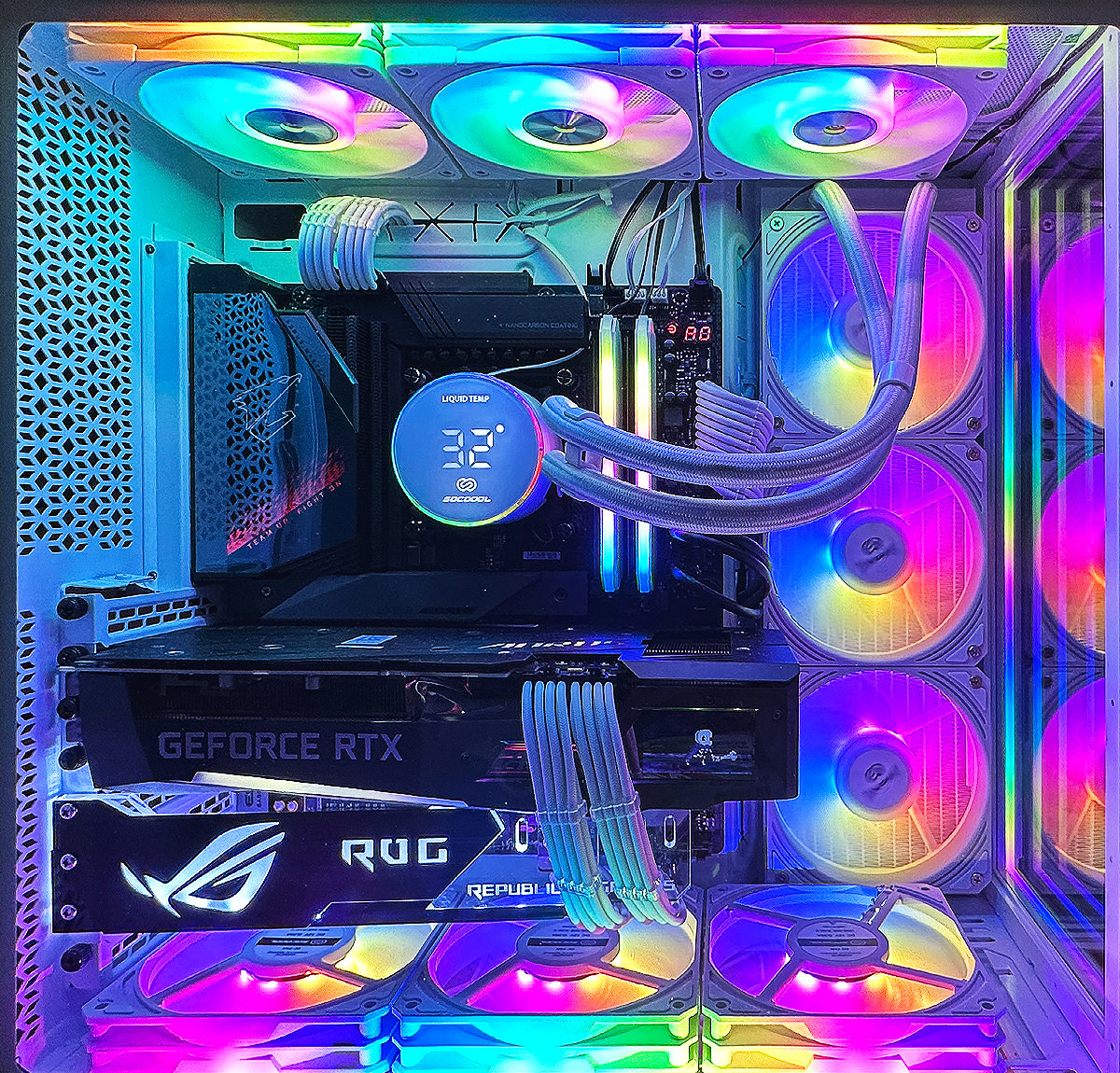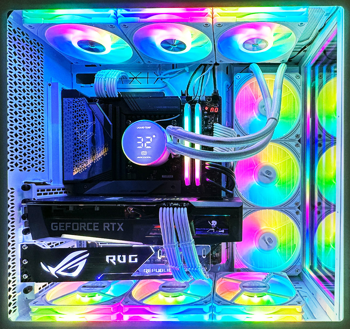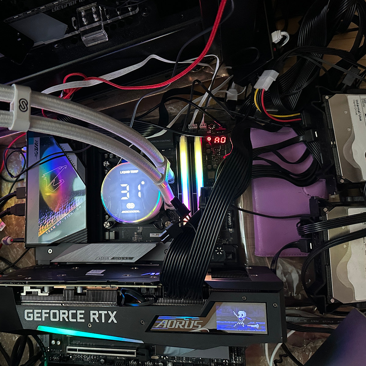 아래는 빌드가 끝난 사진입니다. 그래픽카드 지지대에 ASUS의 ROG로고가 달린 까닭은 이번 RTX 이전에 사용중이던 제품이 ASUS ROG STRIX였기 때문인데 요즘 ASUS의 A/S현실을 깨닫고, 모든 제품에 ASUS는 배제하게 되었어요.