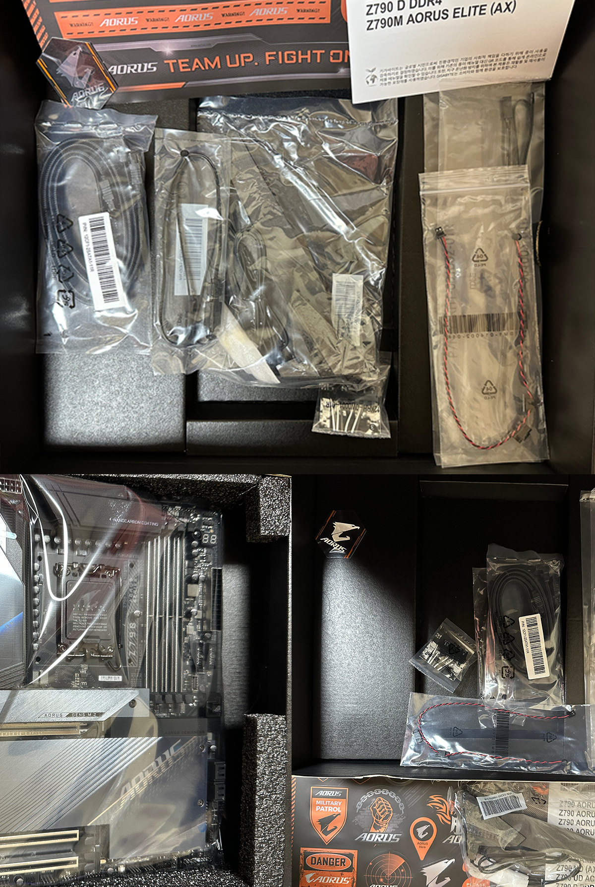 처음에는 GIGABYTE Z690 AORUS MASTER를 구입하려고 각 쇼핑몰 3군대에서 구매를 하였는데 한통의 전화도 없이 결제취소를 당하고 구매금액을 돌려받았습니다. 그렇게 한참 고민하다가 MSI 카본으로 갈까 이번세대의 기가바이트로 갈까 고민하다가 후면 포트의 확장성 때문에 결국 기가바이트 제품을 구입하기로 결심했어요. 제가 현재 사용중인 그래픽카드 또한 기가바이트의 AORUS MASTER이기에 프로그램을 하나라도 줄일 수 있으니 그 점 또한 이득이라 할 수있었죠.